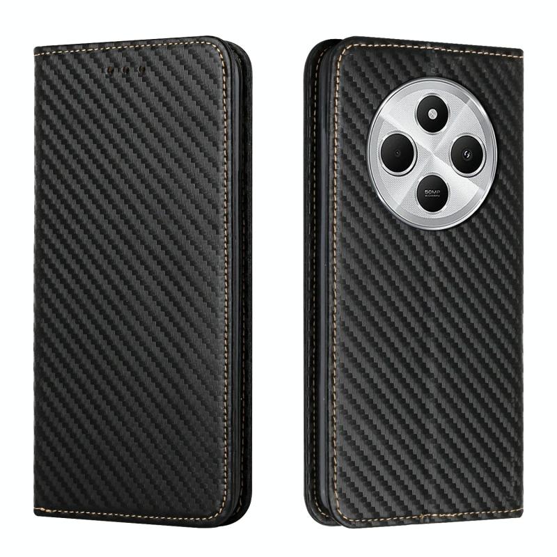 For Redmi A4 5G Carbon Fiber Texture Magnetic Flip Leather Phone Case(Black)
