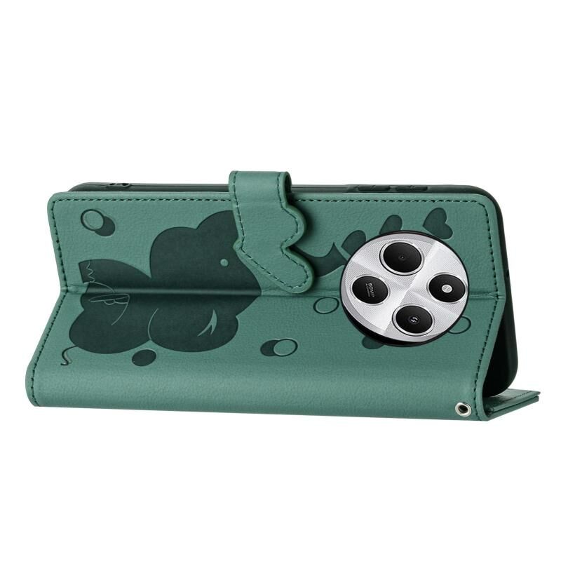 Θήκη τηλεφώνου δερμάτινη με ανάγλυφο σχέδιο καρτούν ελέφαντα για Redmi A4 5G (Πράσινο)
