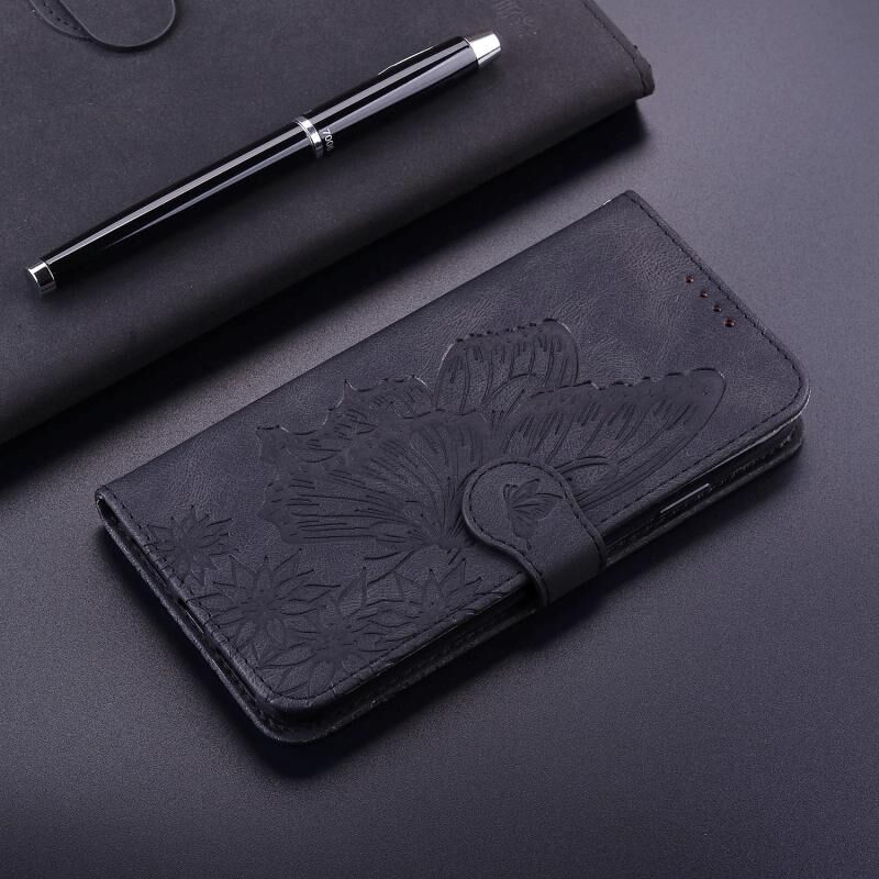 Θήκη τηλεφώνου από δέρμα με οριζόντιο άνοιγμα για Redmi A4 5G, με ανάγλυφο σχέδιο πεταλούδων και ρετρό υφή (Μαύρο)