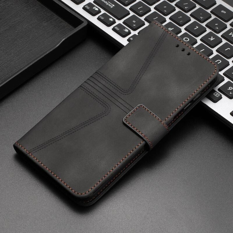 Θήκη τηλεφώνου από δέρμα με τριγωνικό σχέδιο και μονόχρωμο χρώμα για Redmi A4 5G (Μαύρο)