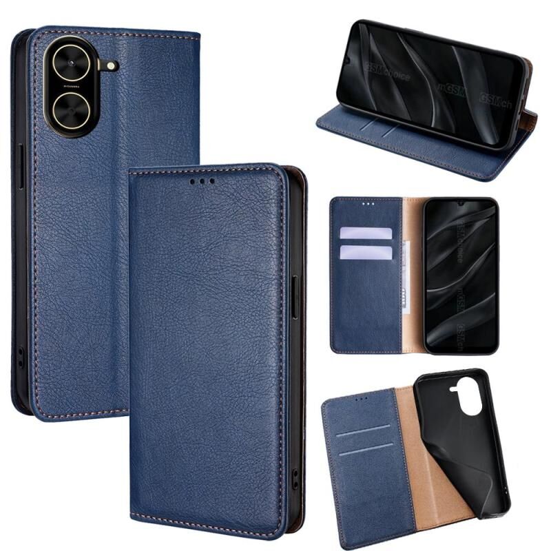 Θήκη τηλεφώνου από μαγνητικό δέρμα με γυαλιστερό λάδι και συμπαγές χρώμα για Redmi A5 4G 171.7mm (Καφέ)
