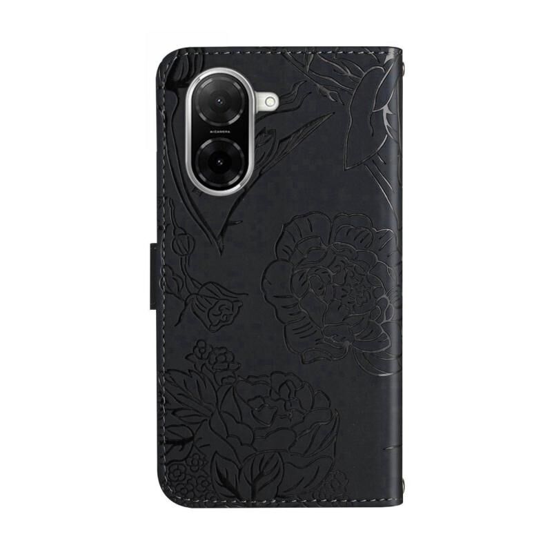 For Redmi A5 4G 171.7mm / Poco C71 Skin Feel Butterfly Embossed Flip Leather Phone Case(Black)