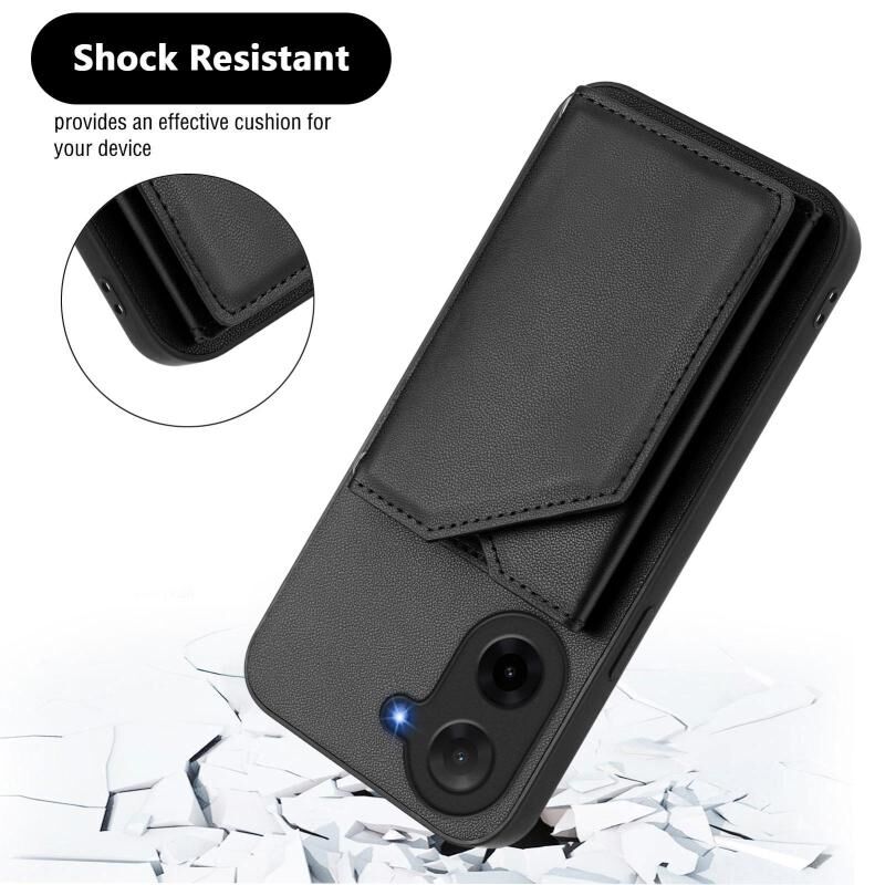 For Redmi A5 4G 171.7mm / Poco C71 Skin Feel Four Card Slots Phone Case with Wrist Strap(Black)