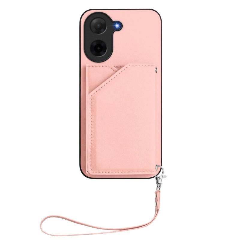 For Redmi A5 4G 171.7mm / Poco C71 Skin Feel Four Card Slots Phone Case with Wrist Strap(Pink)