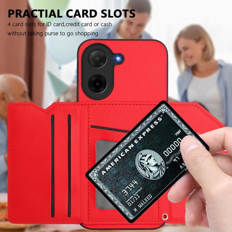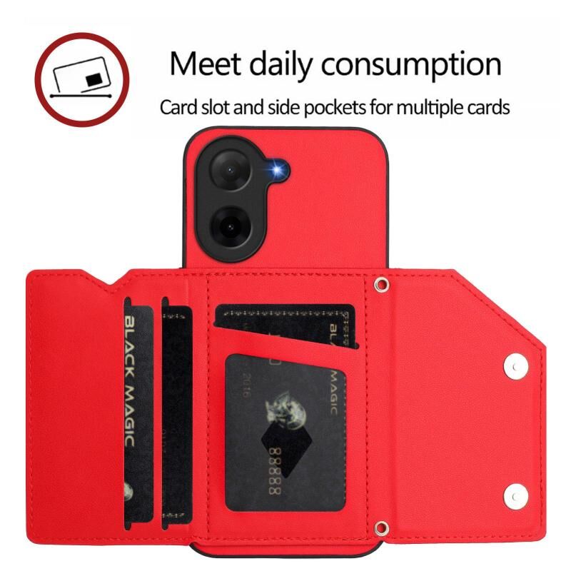 For Redmi A5 4G 171.7mm / Poco C71 Skin Feel Four Card Slots Phone Case with Wrist Strap(Red)