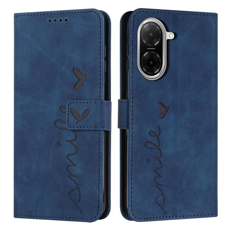 For Redmi A5 4G 171.7mm / Poco C71 Skin Feel Heart Embossed Leather Phone Case with Long Lanyard(Blue)