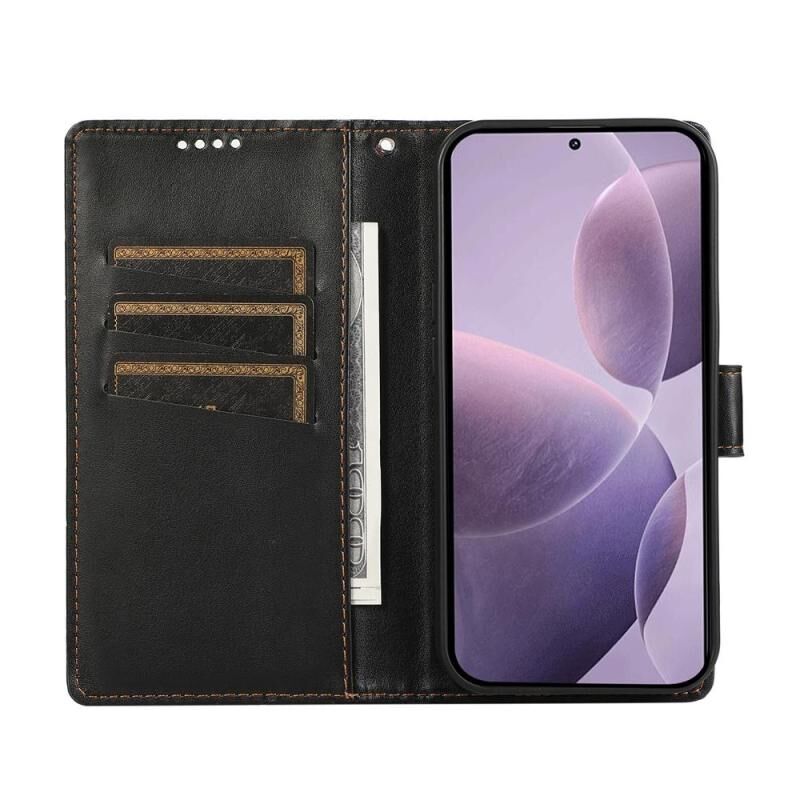 Για Redmi A5 4G 171.7mm / Xiaomi Poco C71 Θήκη Τηλεφώνου με Υφή Γνήσιου Δέρματος PU, Χαραγμένη Γραμμή (Μαύρο)