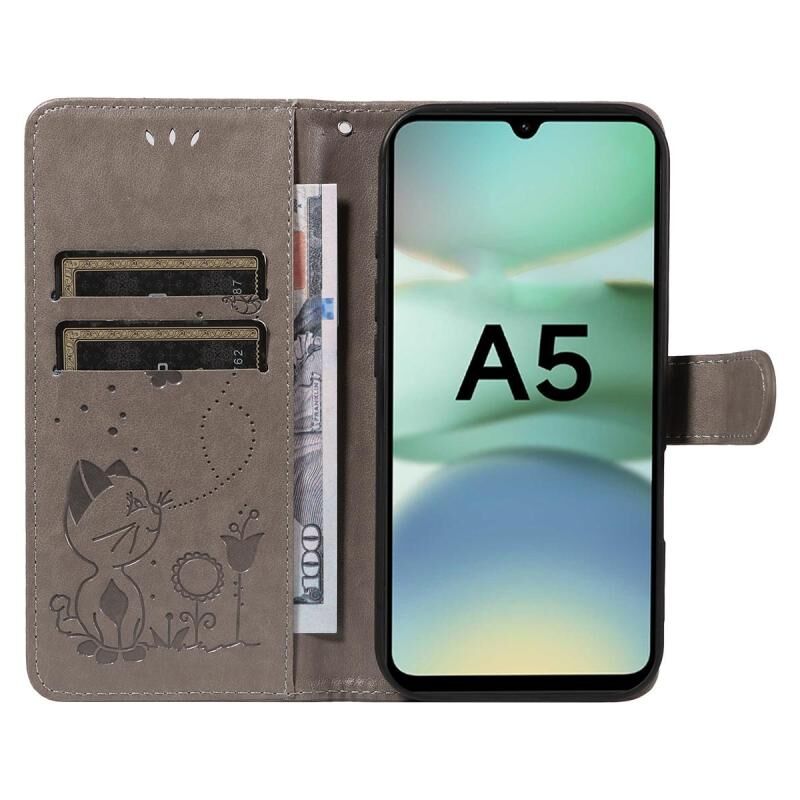 Θήκη τηλεφώνου από δέρμα με ανάγλυφο σχέδιο γάτας και μέλισσας, τύπου flip, για Greymi A5 4G 173.3mm (Γκρι)