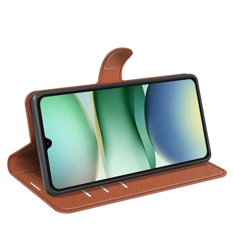 Θήκη τηλεφώνου από δέρμα με οριζόντιο άνοιγμα για Redmi A5 4G 173.3mm με υφή Litchi και βάση στήριξης (Μαύρο)