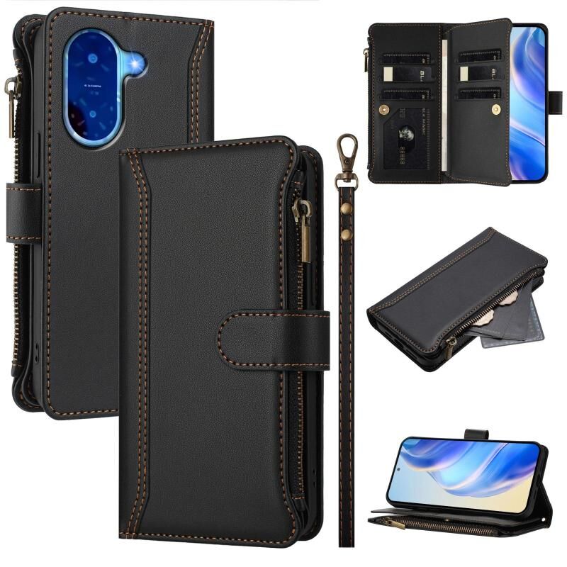 Για Redmi A5 4G 173.3mm Μαγνητικό Κλείσιμο 9 Θήκες Κάρτας Δερμάτινη Θήκη με Φερμουάρ και Λουρί Χεριού (Σκούρο Μπλε)