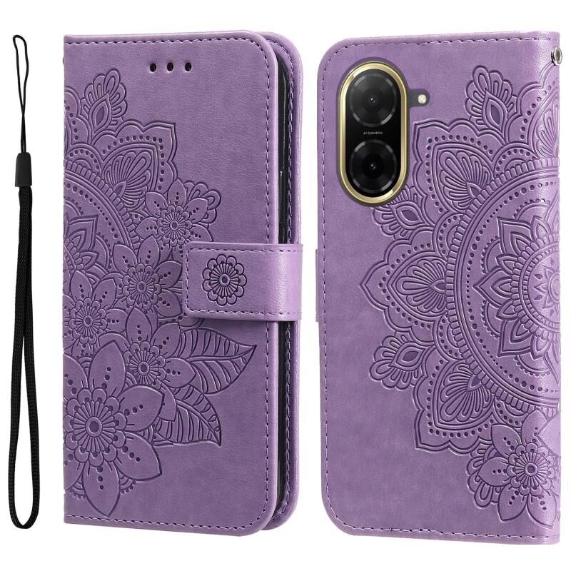 Θήκη τηλεφώνου από δέρμα με ανάγλυφα επτά πέταλα λουλουδιών για Redmi A5 4G 173.3mm (Ανοιχτό Μωβ)