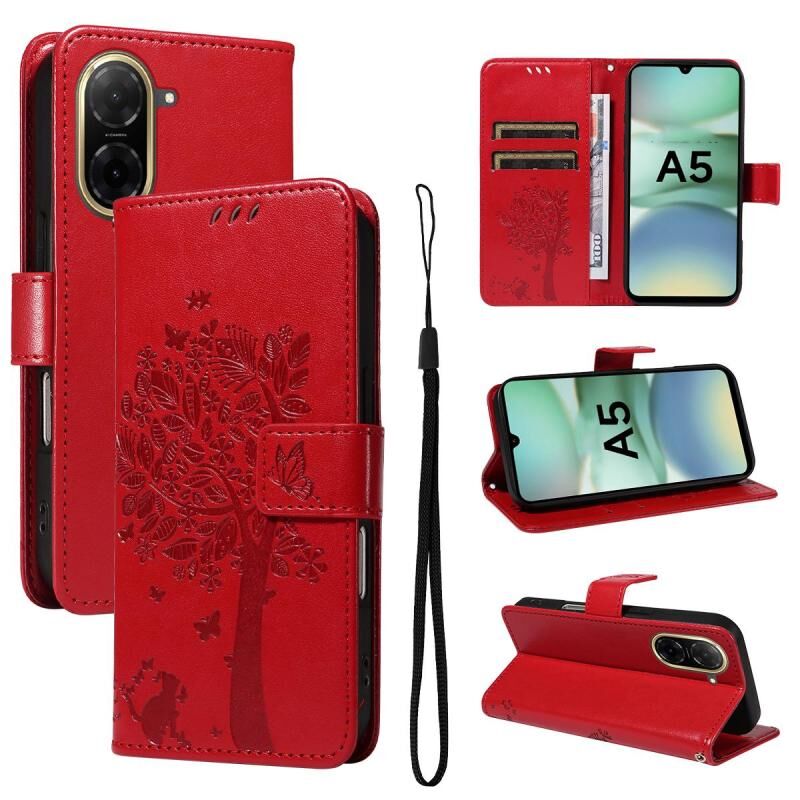 Θήκη τηλεφώνου από δέρμα με σχέδιο δέντρου & γάτας, τύπου flip, για Redmi A5 4G 173.3mm (Ροζ)