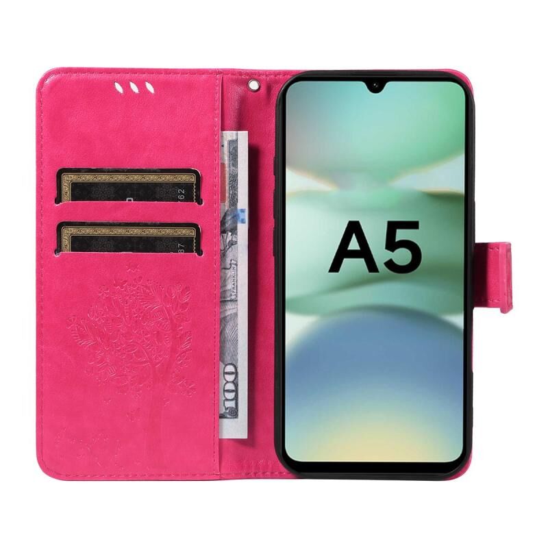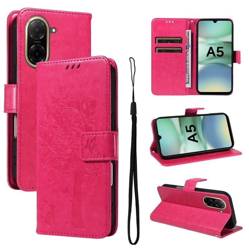 Θήκη τηλεφώνου από δέρμα με σχέδιο δέντρου & γάτας, τύπου flip, για Redmi A5 4G 173.3mm (Ροζ)