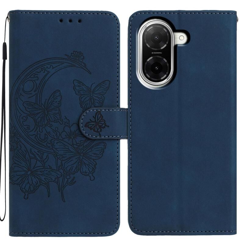 Θήκη τηλεφώνου από δέρμα με ανάγλυφο σχέδιο χορού πεταλούδας στο φως του φεγγαριού για Redmi A5 4G EU 173.3mm (Ναυτικό μπλε)