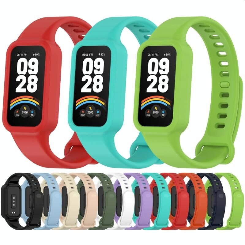 Για Redmi Band 3 / Xiaomi Smart Band 9 Active Solid Color Soft Silicone Integrated Watch Band (σκούρο πράσινο)