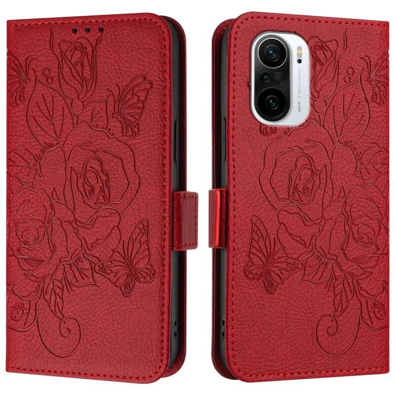 Για Redmi K40 / K40 Pro ανάγλυφο Rose RFID Anti-theft δερμάτινη θήκη τηλεφώνου (κόκκινο)