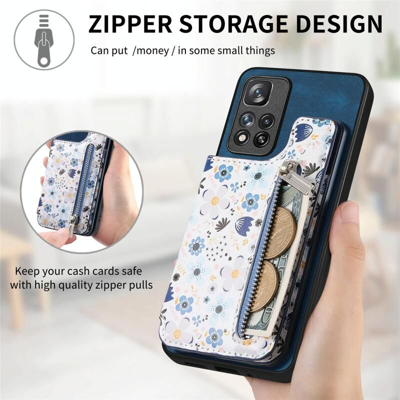 Για Redmi K40 Ρετρό ζωγραφισμένο φερμουάρ πορτοφόλι πίσω τηλέφωνο υπόθεση (μπλε)