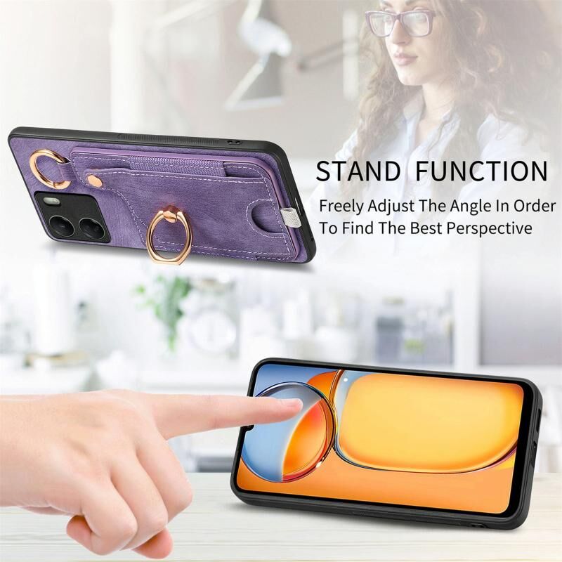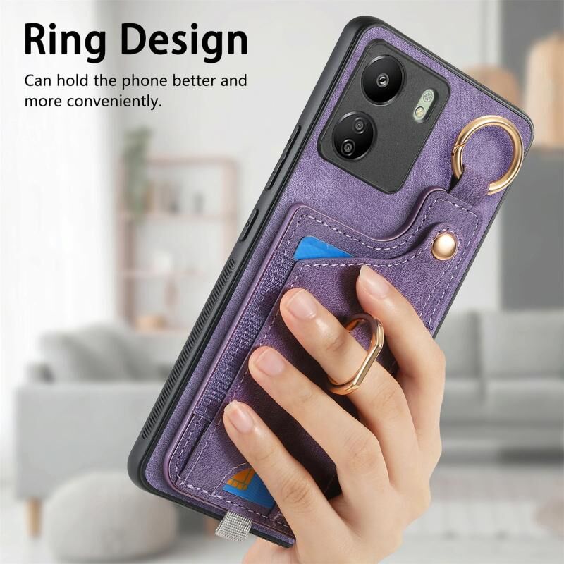 Για Redmi K40 Ρετρό δέρμα αίσθηση δαχτυλίδι κάρτα τσάντα υπόθεση τηλεφώνου με Hang Loop (μωβ)