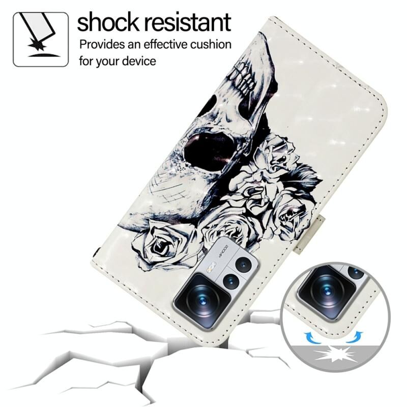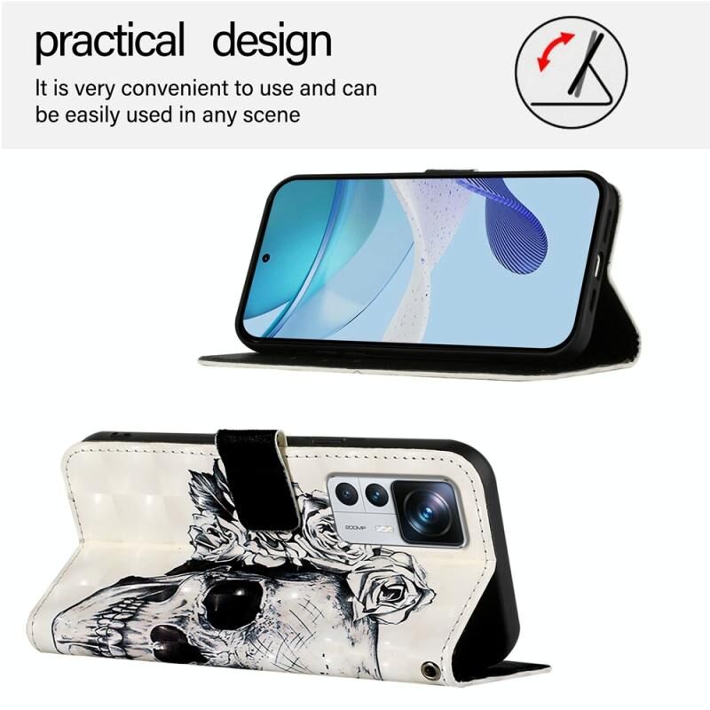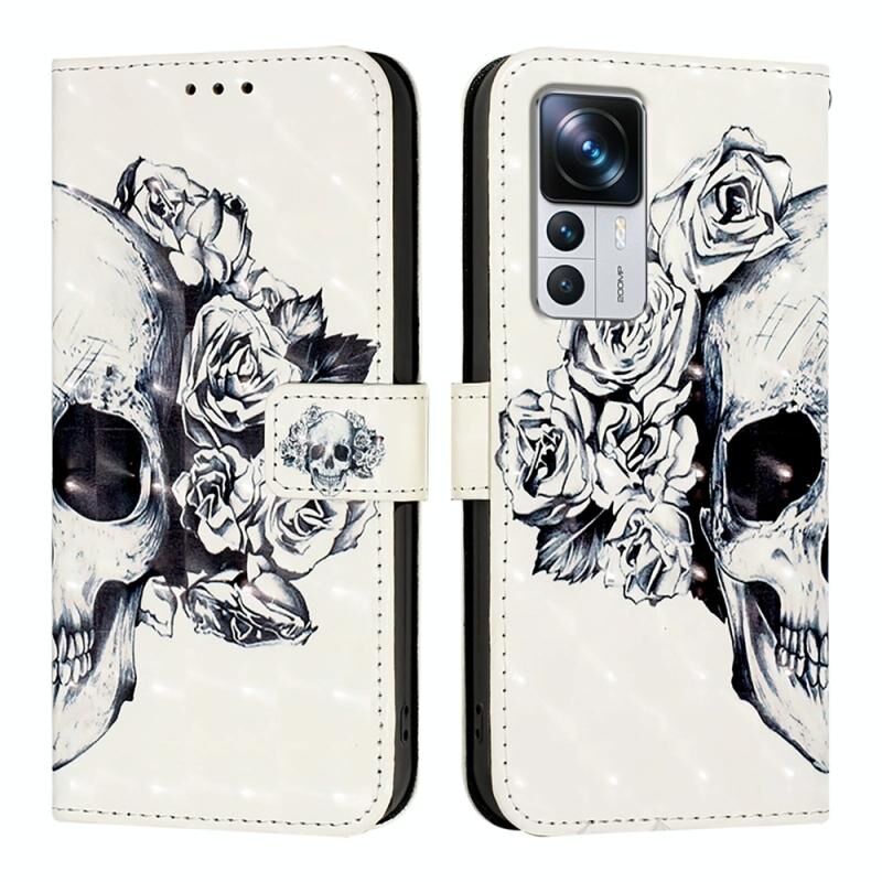 Θήκη τηλεφώνου από δέρμα με οριζόντιο άνοιγμα και τρισδιάστατη ζωγραφική για Redmi K50 Ultra / Xiaomi 12T / 12T Pro (Κρανίο)