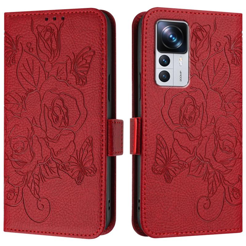 Για Redmi K50 Ultra / Xiaomi 12T / 12T Pro ανάγλυφο Rose RFID Anti-theft δερμάτινη θήκη τηλεφώνου (κόκκινο)