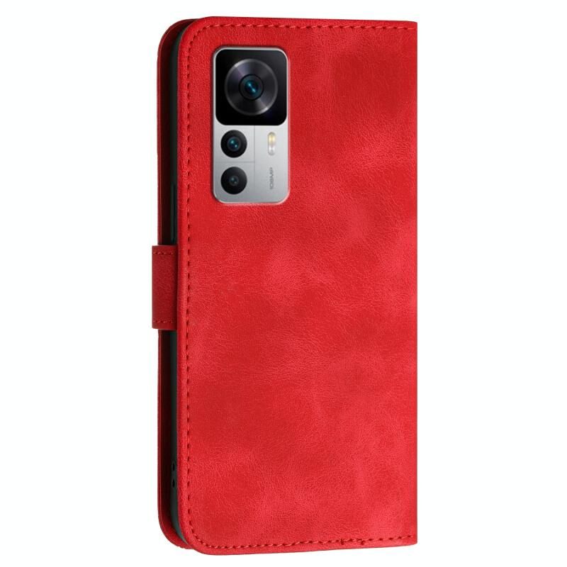 Θήκη τηλεφώνου από δέρμα με ανάγλυφο σχέδιο πλέγματος και πεταλούδας για Redmi K50 Ultra YX0080 με κορδόνι (Κόκκινο)