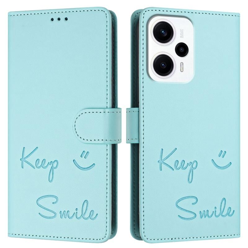 Για Redmi K50i Χαμόγελο ανάγλυφο RFID δερμάτινη θήκη τηλεφώνου (Μέντας πράσινο)