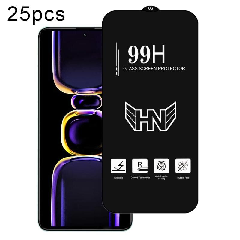 For Redmi K60 25pcs High Aluminum Large Arc Full Screen Tempered Glass Film