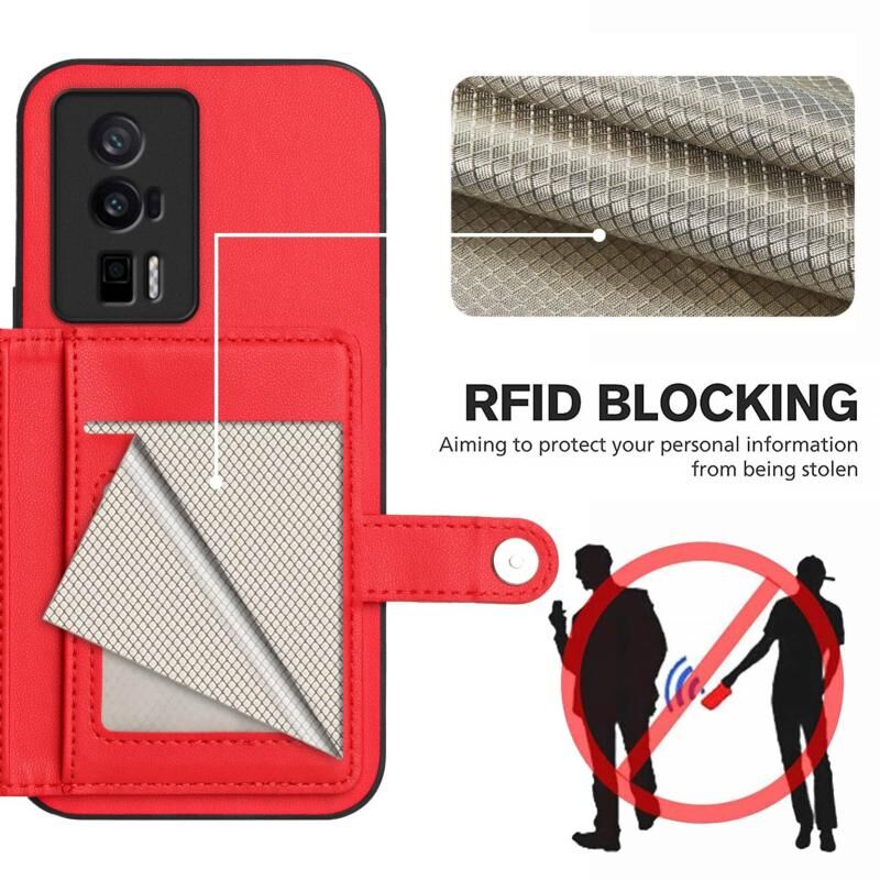 Για Redmi K60 / K60 Pro Button Card Bag RFID Anti-theft τηλέφωνο υπόθεση (κόκκινο)