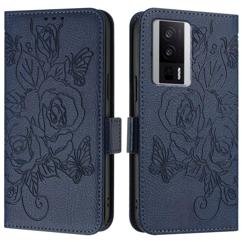 Για Redmi K60 / K60 Pro ανάγλυφο Rose RFID Anti-theft δερμάτινη θήκη τηλεφώνου (Σκούρο μπλε)