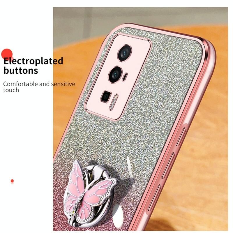 Για το Redmi K60 / K60 Pro Επιμεταλλωμένο βαθμιδωτό Glitter πεταλούδα κάτοχος TPU τηλέφωνο υπόθεση (ροζ)