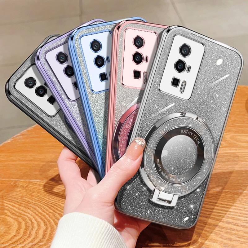 Για το Redmi K60 / K60 Pro επιμεταλλωμένο βαθμιδωτό Glitter στρογγυλή θήκη τηλεφώνου TPU κατόχου (μωβ)