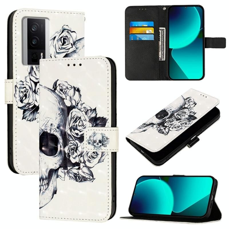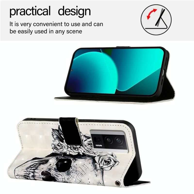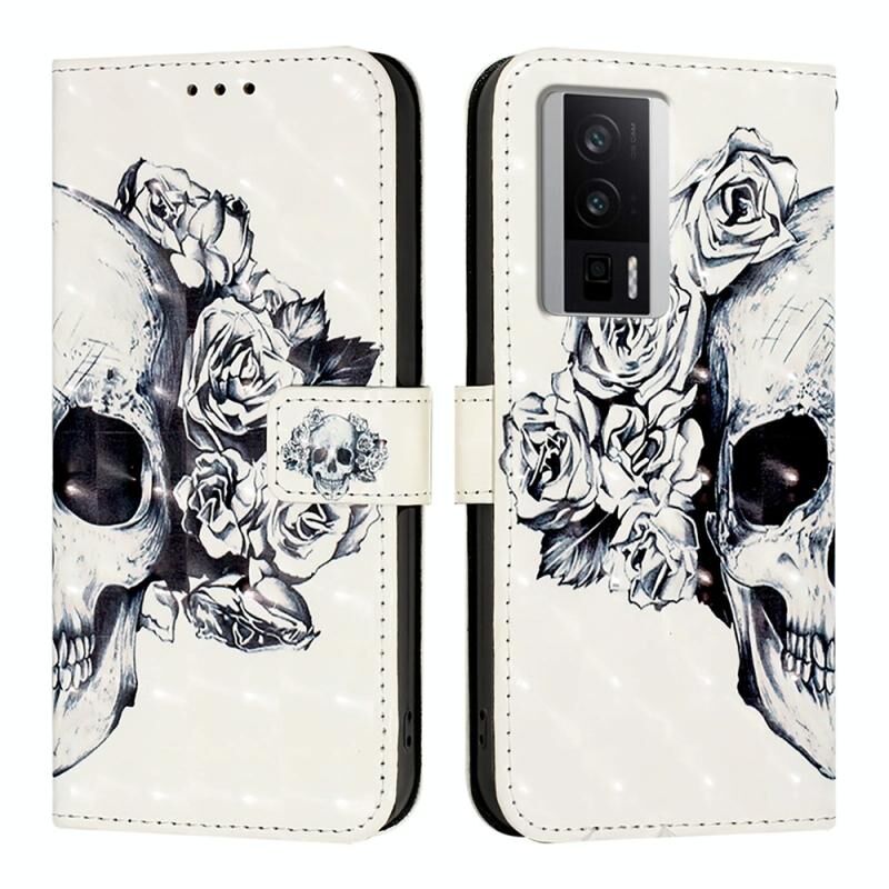 Θήκη τηλεφώνου από δέρμα με οριζόντιο άνοιγμα και τρισδιάστατη ζωγραφική για Redmi K60 / K60 Pro / Xiaomi Poco F5 Pro (Κρανίο)