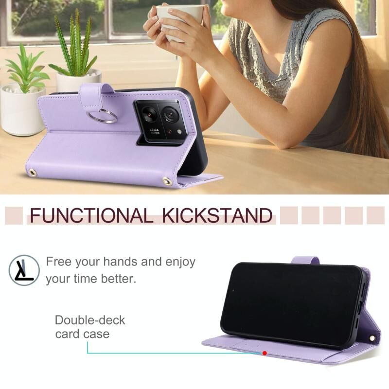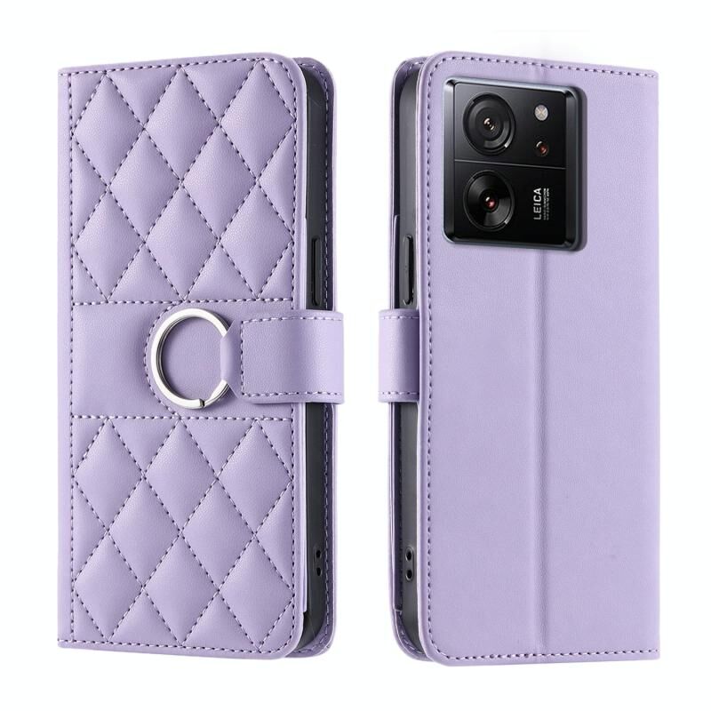 Για Redmi K60 Ultra δαχτυλίδι πόρπη Rhombic δέρμα τηλέφωνο υπόθεση (μωβ)