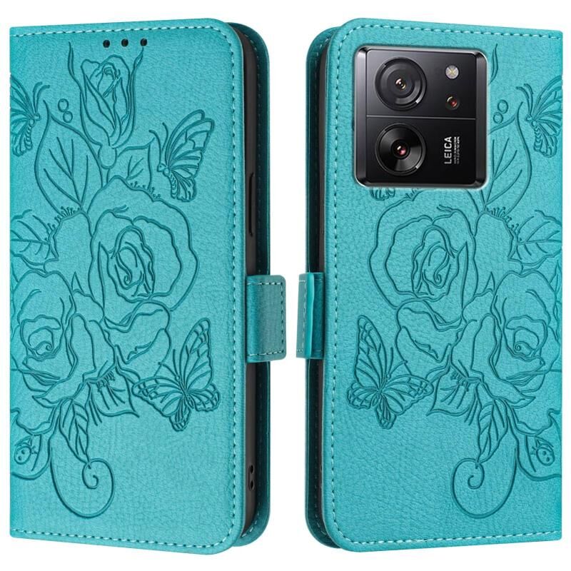 Για Redmi K60 Ultra / Xiaomi 13T / 13T Pro ανάγλυφο Rose RFID Anti-theft δερμάτινη θήκη τηλεφώνου (γαλάζιο)