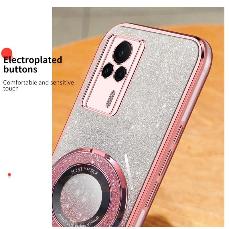 Για Redmi K60E επιμεταλλωμένο διαβάθμιση Glitter στρογγυλή κάτοχος TPU τηλέφωνο υπόθεση (ασημί)