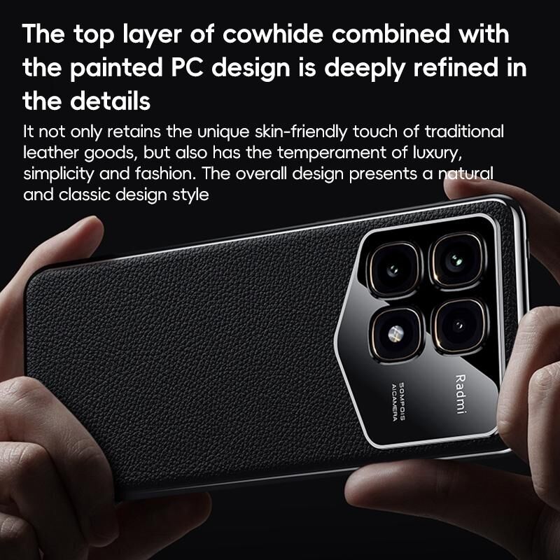 Θήκη τηλεφώνου από δέρμα αγελάδας πρώτης στρώσης και ηλεκτρολυμένο PC για Redmi K70 / K70 Pro (Πορτοκαλί)