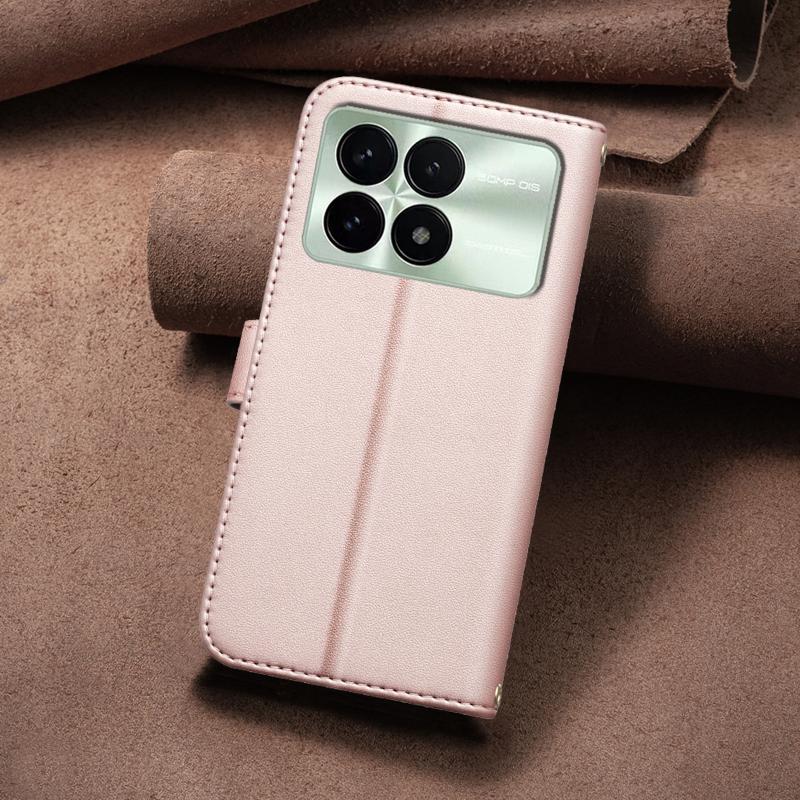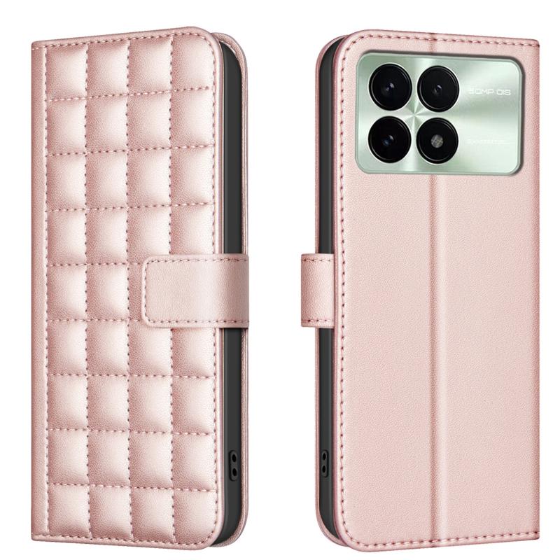 Θήκη δερμάτινη με τετράγωνο σχέδιο για Redmi K70 / K70 Pro (Ροζ Χρυσό)
