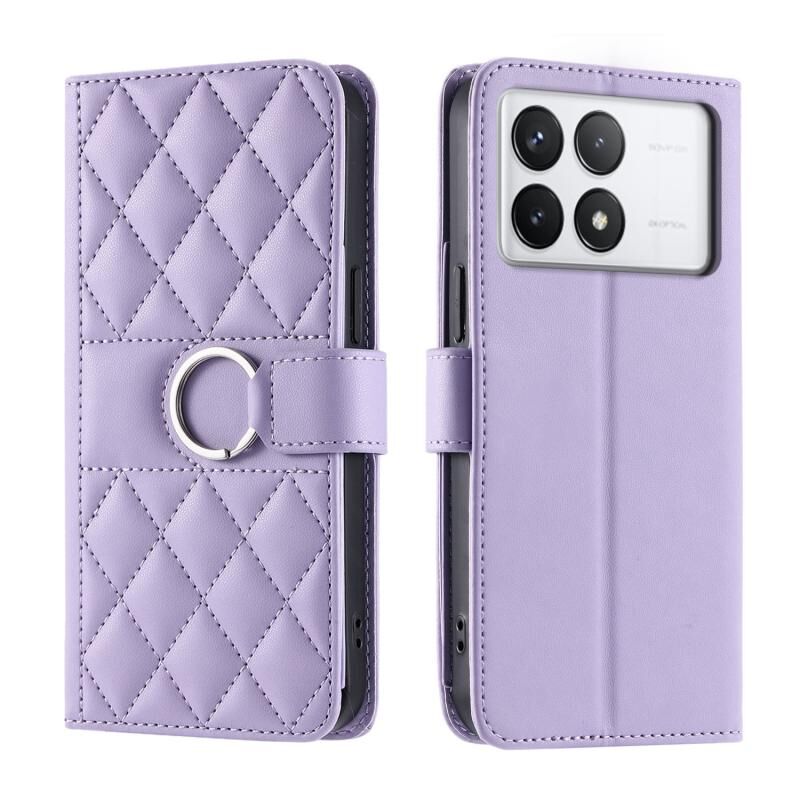 Για Redmi K70 δαχτυλίδι πόρπη Rhombic δέρμα τηλέφωνο υπόθεση (Μωβ)