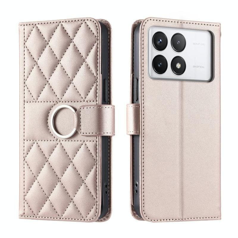 Για Redmi K70 δαχτυλίδι πόρπη Rhombic δέρμα τηλέφωνο υπόθεση (Ροζ χρυσός)