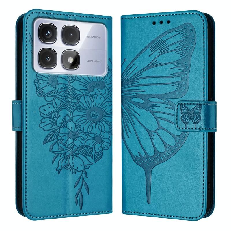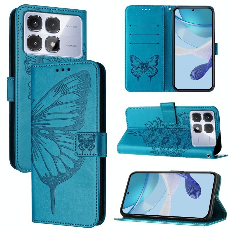 Για Redmi K70 Ultra 5G Παγκόσμια ανάγλυφη πεταλούδα δερμάτινη θήκη τηλεφώνου (μπλε)
