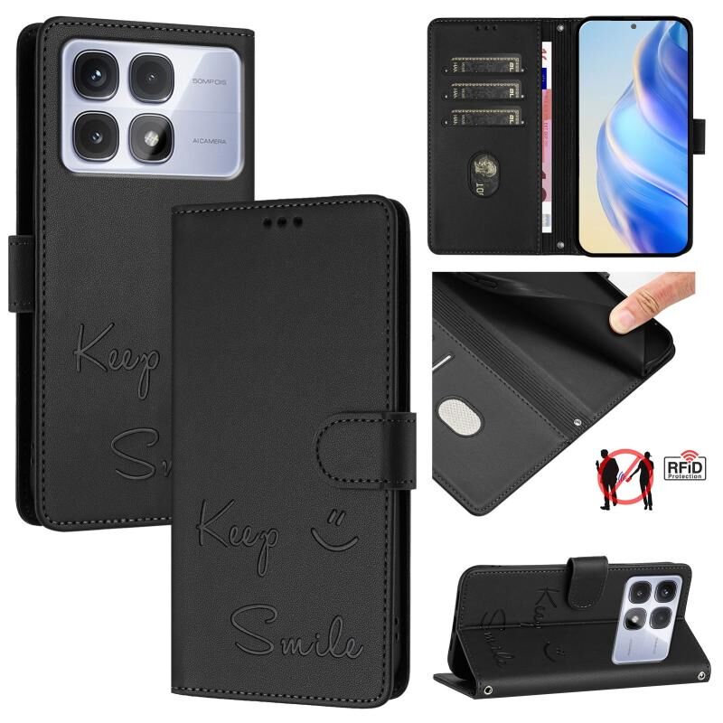 Για Redmi K70 Ultra 5G Παγκόσμια χαμόγελο ανάγλυφο RFID δερμάτινη θήκη τηλεφώνου (Μαύρο)