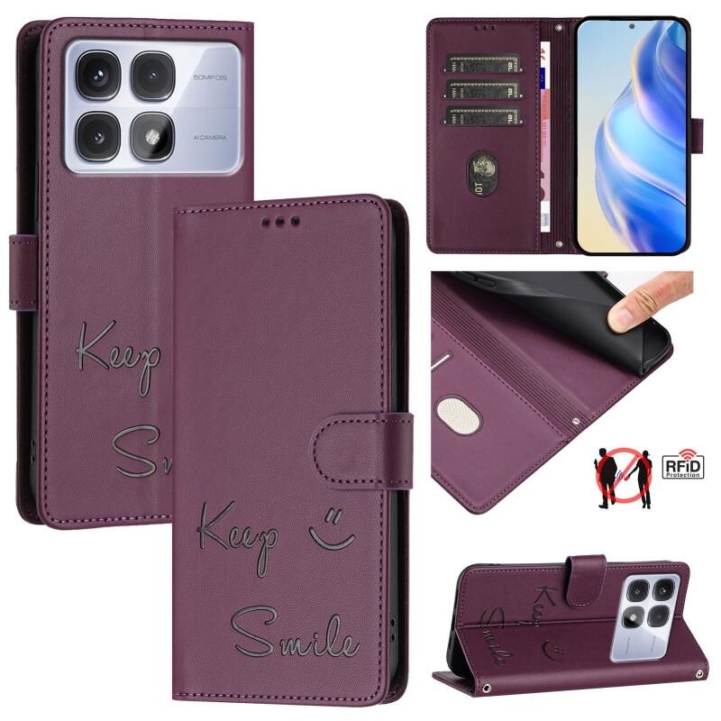 Για Redmi K70 Ultra 5G Παγκόσμια χαμόγελο ανάγλυφο RFID δερμάτινη θήκη τηλεφώνου (Κόκκινο)