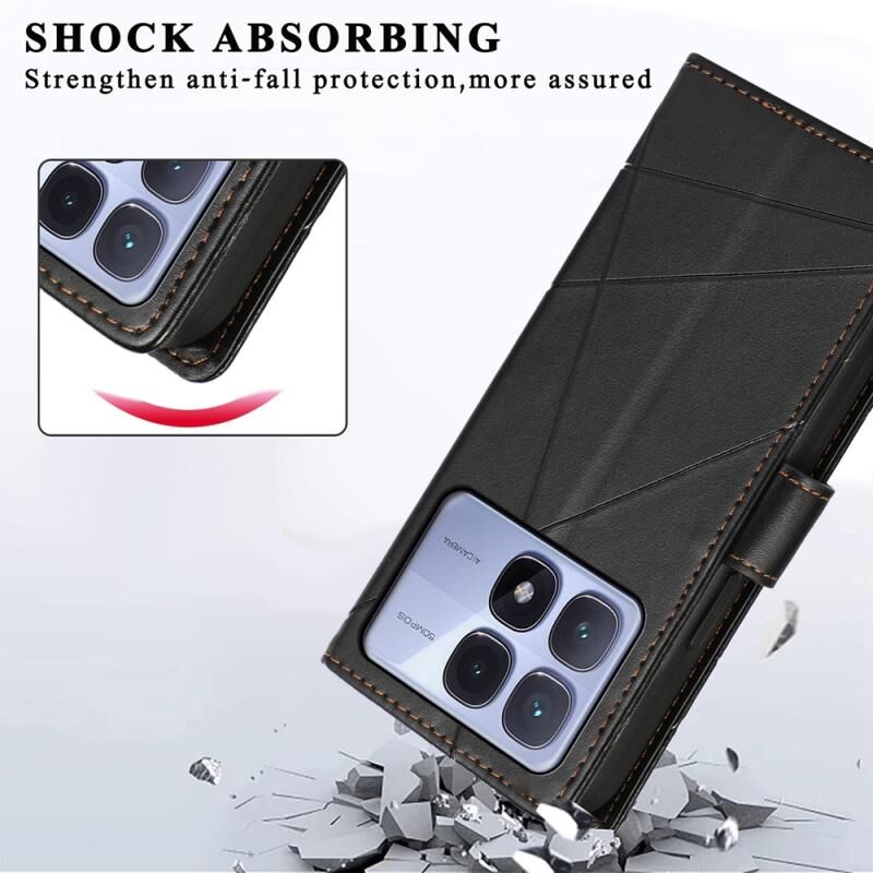 Θήκη τηλεφώνου για Redmi K70 Ultra από γνήσιο δέρμα PU με ανάγλυφη υφή και γραμμές (Μπλε)