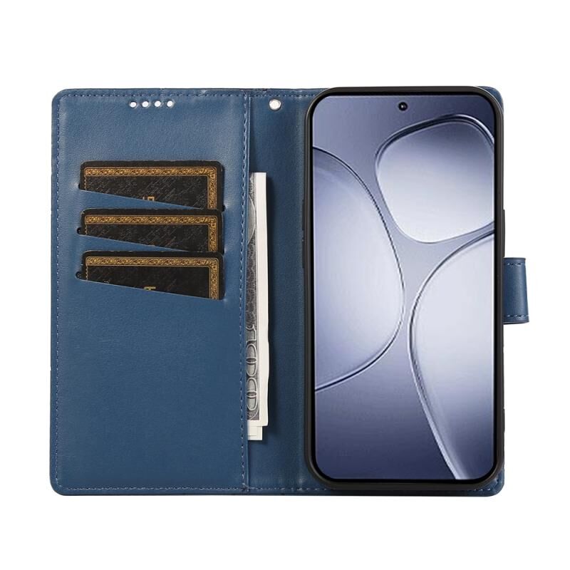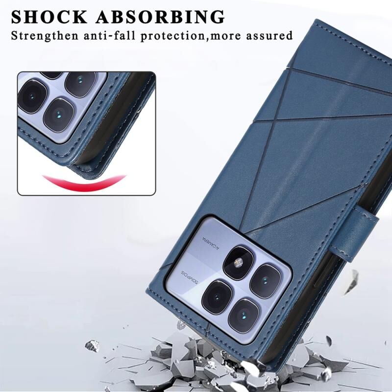 Θήκη τηλεφώνου για Redmi K70 Ultra από γνήσιο δέρμα PU με ανάγλυφη υφή και γραμμές (Μπλε)