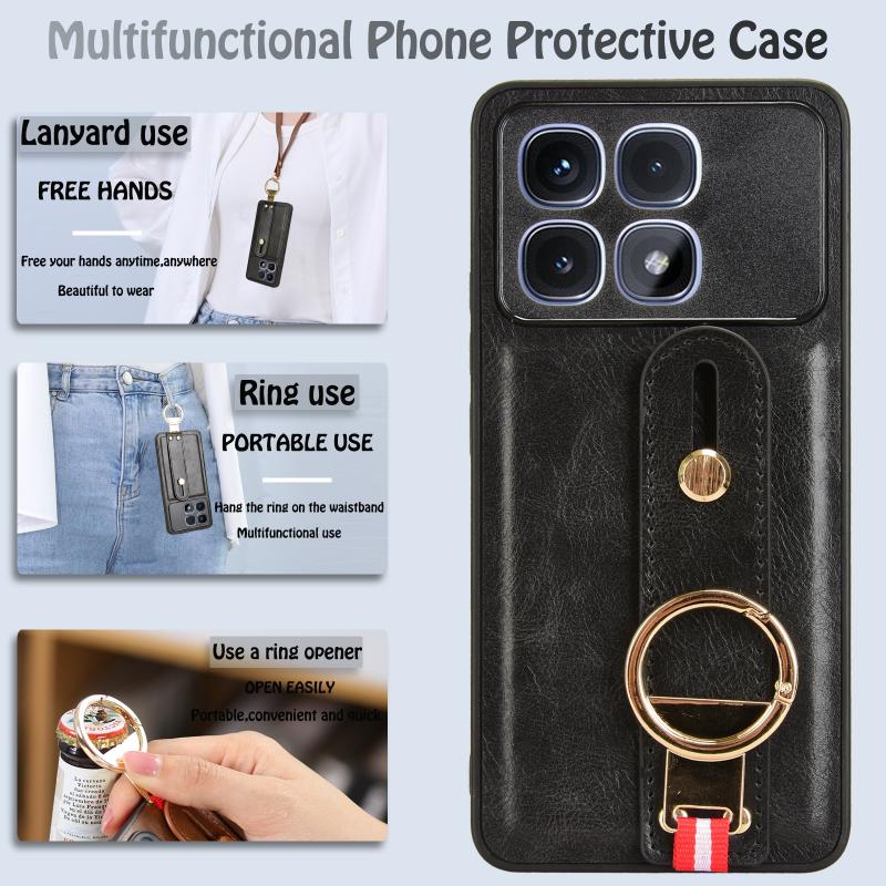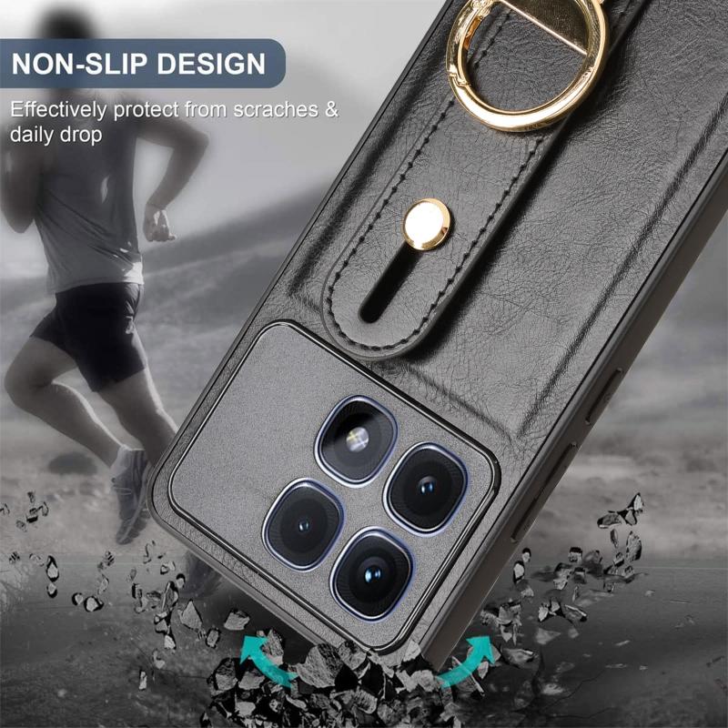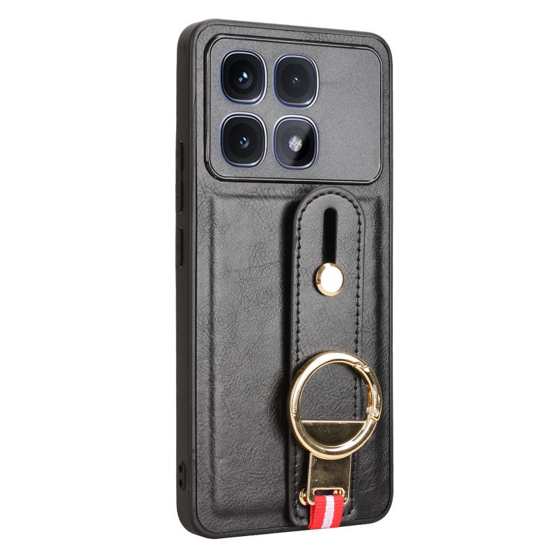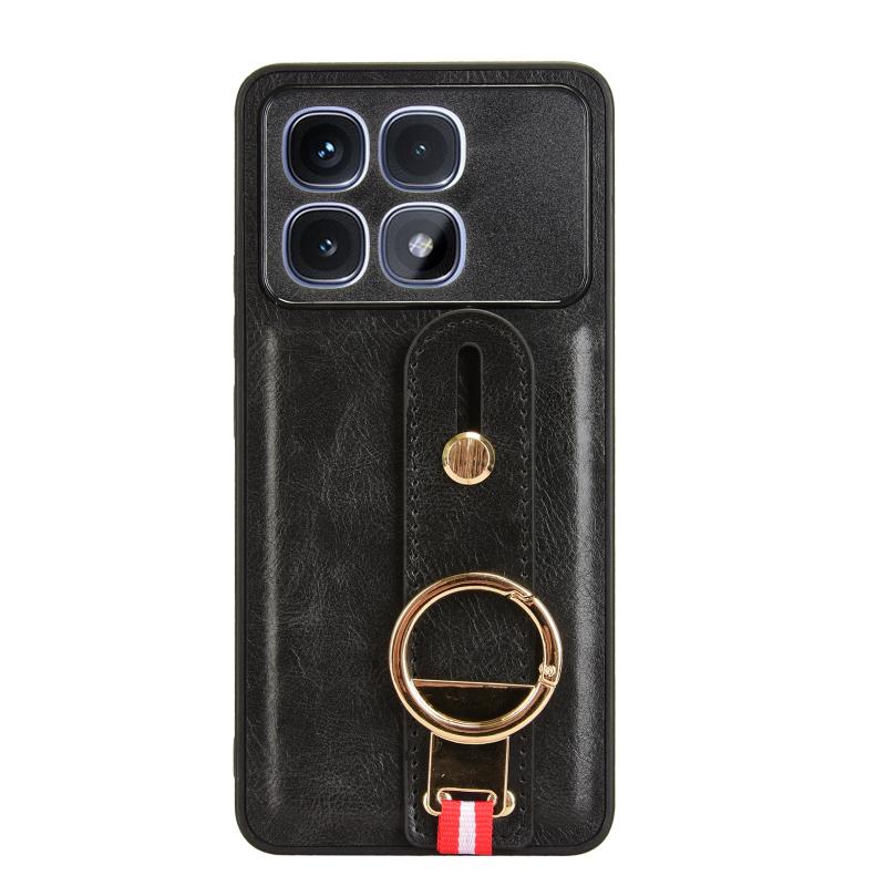For Redmi K70 Ultra Wristband Leather Back Phone Case(Black)
