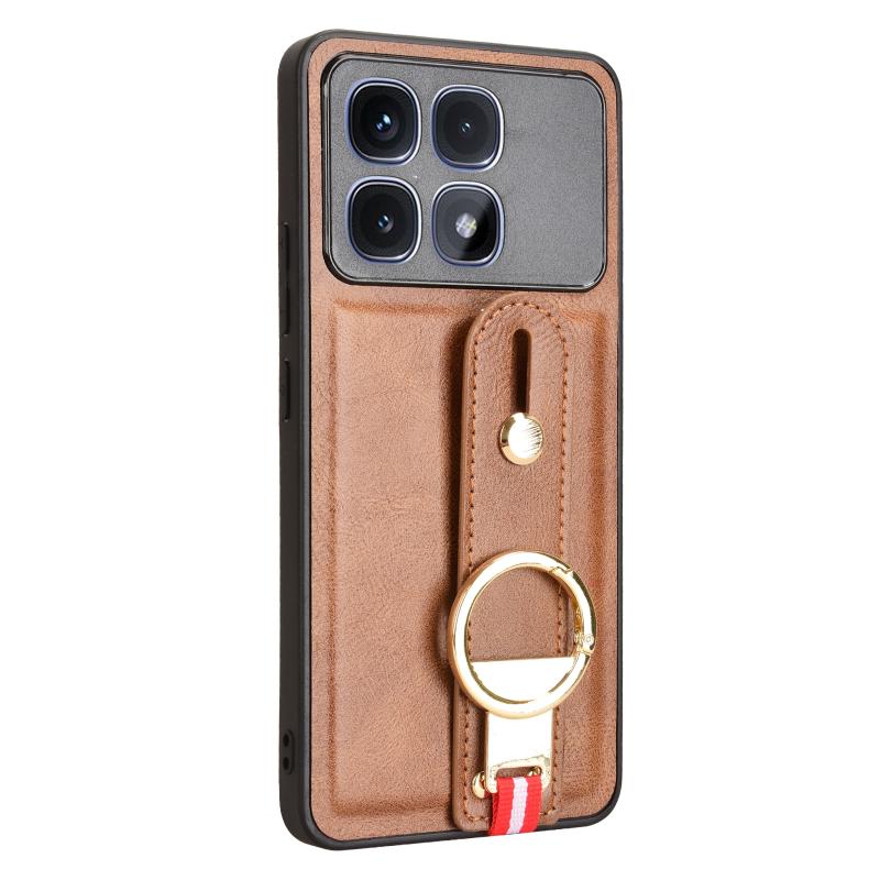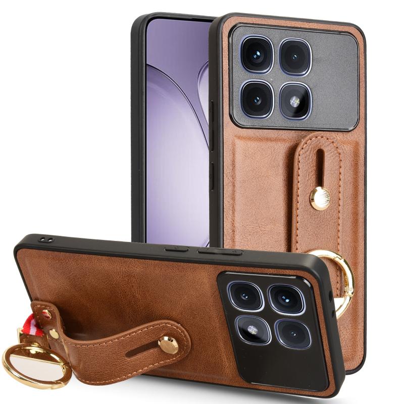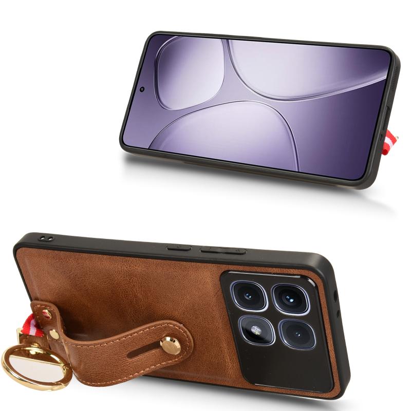 For Redmi K70 Ultra Wristband Leather Back Phone Case(Brown)
