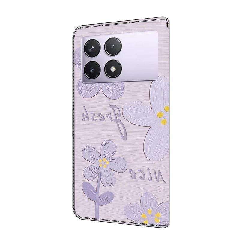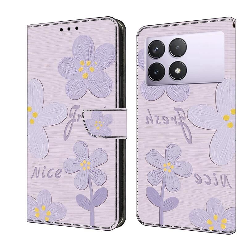 Θήκη τηλεφώνου από φρέσκο ​​βαμμένο δέρμα για Redmi K70E (Μωβ λουλούδια ζωγραφικής με λάδι)