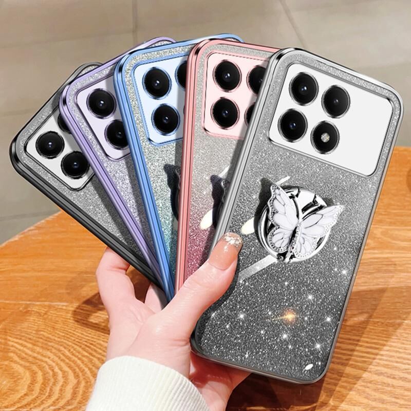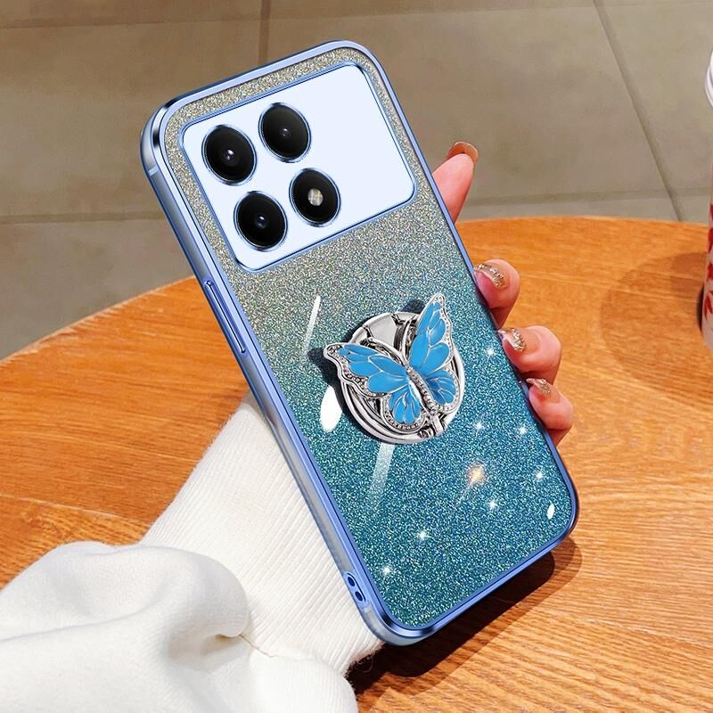 Για Redmi K70E Επιμεταλλωμένο διαβάθμιση Glitter πεταλούδα κάτοχος TPU τηλέφωνο υπόθεση (Sierra Blue)