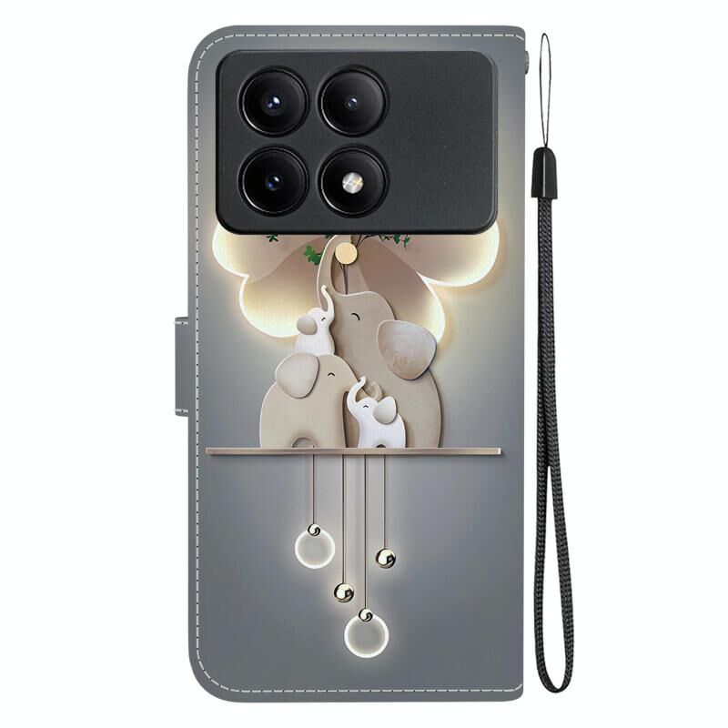 Θήκη τηλεφώνου από δέρμα με πολύχρωμη σχεδίαση κρυστάλλινης υφής για Redmi K70E / Poco X6 Pro (Ελέφαντες)