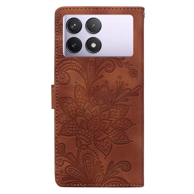 Θήκη τηλεφώνου από PU με μαγνητικό κούμπωμα και δαντέλα με λουλουδάτο ανάγλυφο για Redmi K70E / Poco X6 Pro με λουρί καρπού (Πράσινο)